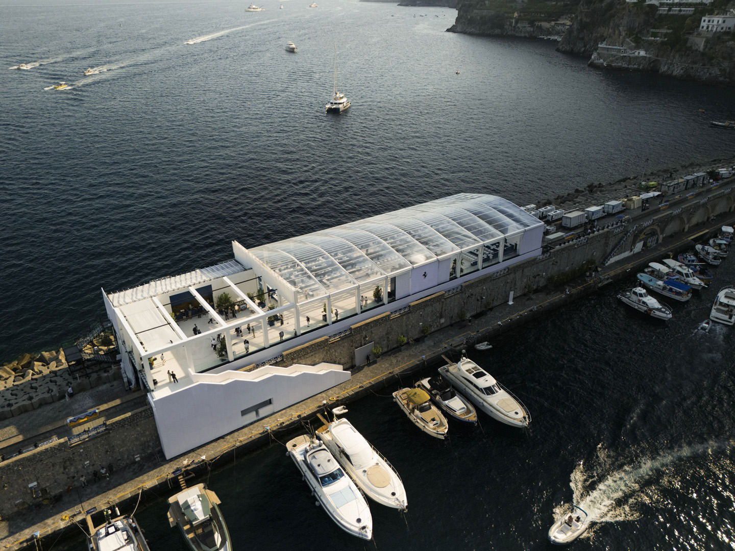 Ferrari Amalfi World Première un’architettura sospesa sul porto, un reveal open air in un party after-dinner esclusivo. L’auto svelata sul mare di Amalfi come icona di eleganza, sportività, lifestyle